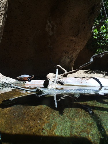 Until this trip, I’d not been to San Diego as an adult. I had, however, been as a child once. I don’t remember much, but I know we went to the San Diego Zoo (either my sister or I had a pink baseball cap for years after). The only thing I remember about the San Diego Zoo was going and seeing either this species (even this individual, perhaps!) or another thin-nosed crocodilian. I recall that, after staring at it for a long while, I declared to everyone around me (and did that include strangers or just family; I have no idea) that it was a fake. I recall thinking no alligator or crocodile I’d ever seen photos of had such thin noses. And it wasn’t moving. So, to my mind, it was CLEARLY a fake. The adults around me all laughed. One even tried to tell me that zoos don’t do that, but I was adamant.