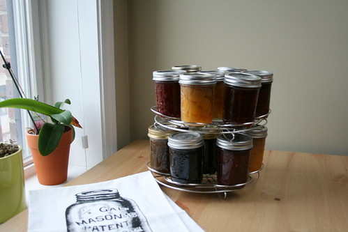Since then, though, I’ve added three things that make my life substantially easier. First is a basic canning rack1. I actually bought two, because they stack on jars & I can do two sets of half-pint jars at once in my canner/stock pot. For a very long time, I was using a bunch of bands twist tied together in a rigged-up rack. It worked, don’t get me wrong, but it was fiddly & annoying. And I could only do one set of jars at a time.