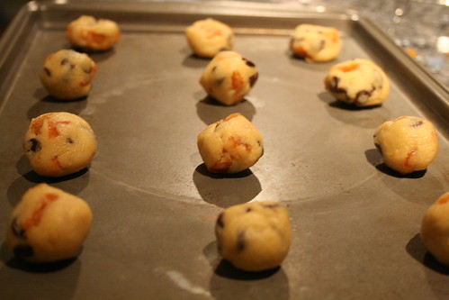 Keep the cookies on the small side, too, I think. I did that, and it gave me a lot of small & satisfying cookies. Oddly, this didn’t mean I ate more of them, but that they lasted a bit longer than expected, given “my weakness for sweets.”:http://metacookbook.com/archives/182-87-Old-Fashioned-Fruit-Crumble.html Smaller is also better because there’s less “structural components” (aka: cookie) between you and the chocolatey, apricoty gooness.