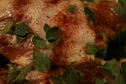 The leaves from a few sprigs of oregano or marjoram (I used oregano.)