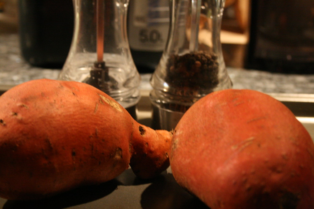 Before we go on to ingredients, I will say that the true title of this recipe, in both books, is “Sweet Potatoes, Simply Cooked”, because there are three ways to cook this delicious tuber “simply”. So expect more to come. Possibly later this week, as I have a giant sweet potato and a night to myself coming up!