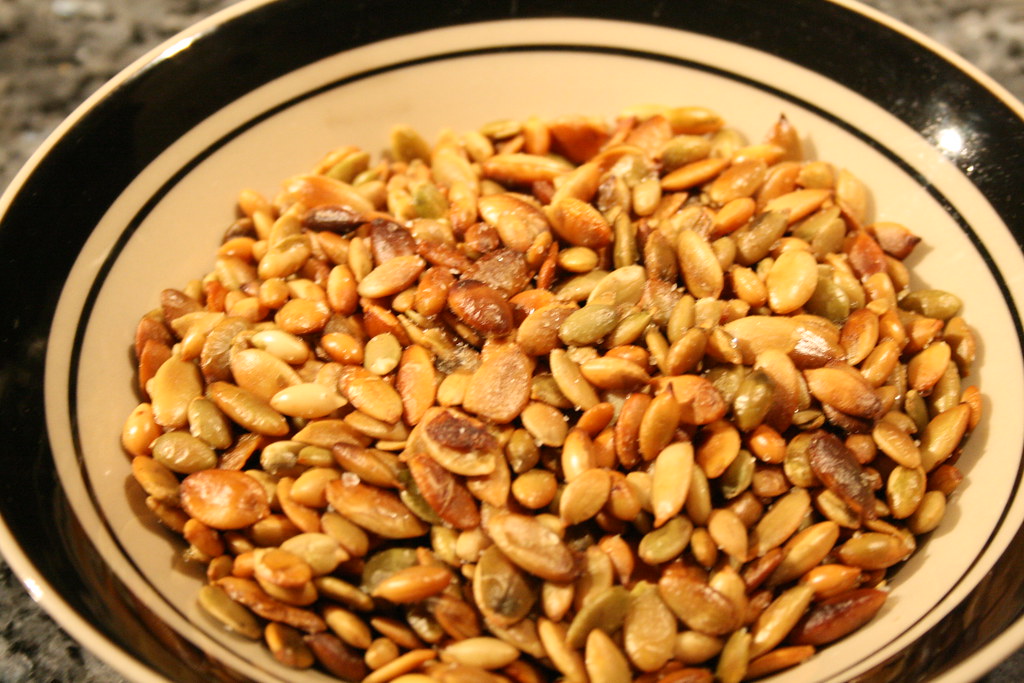 A couple of weeks ago we made a tasty Arizona Pumpkin Soup that said it would do well with some toasted pumpkin seeds. We bought a bag (a few cups worth) of raw pumpkin seeds thinking, how hard can it be? Well, not very, though there are a few gotchas.