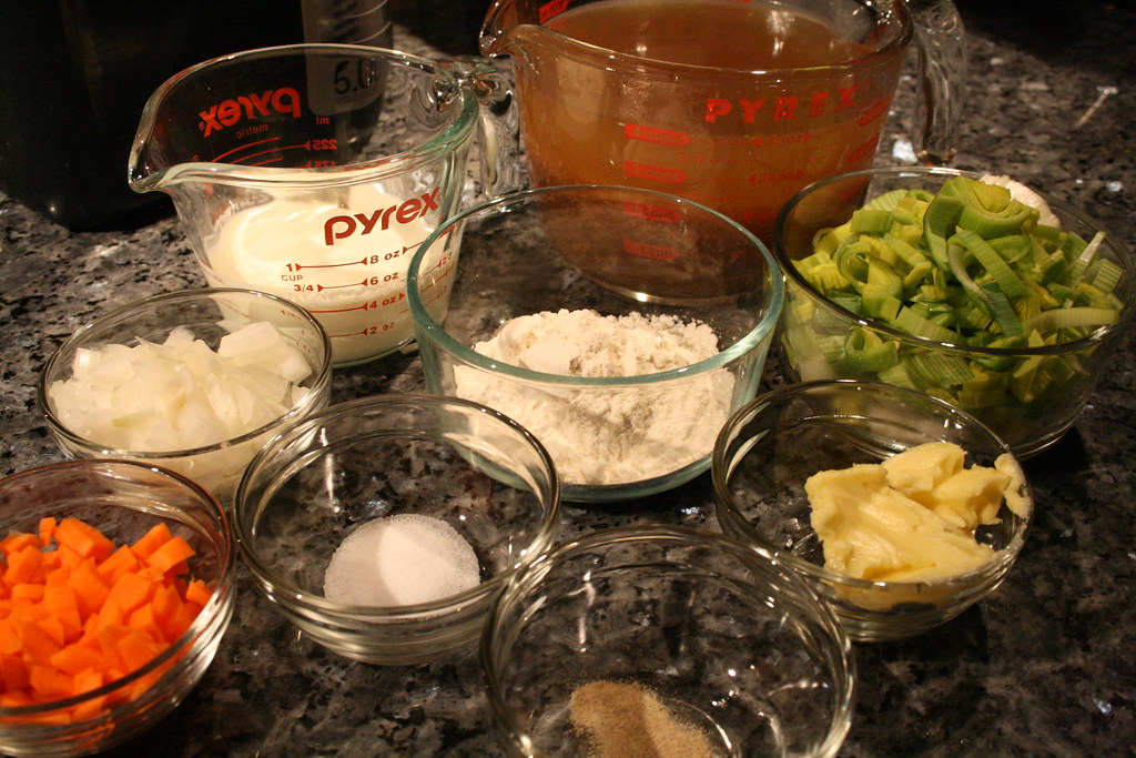 Awhile back, I made “White Wine, Leek and Onion Soup”:http://www.metacookbook.com/archives/153-83-White-Wine,-Onion-and-Leek-Soup.html because Bill couldn’t find his leek soup recipe I couldn’t find the leek soup recipe I remembered from class.