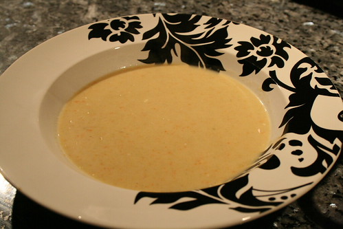 Anyway, I was truly glad to have found this recipe again, because it is really quite tasty. It won’t turn out as white as most people think of when they thing “cream of X” soup. Or, at least, it didn’t turn out as white as I thought it would. And that makes sense; I shouldn’t have expected a fairly white soup. I was using green and orange ingredients, after all.
