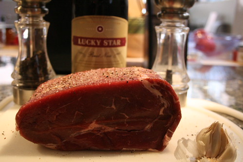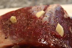 Well, for one, pay attention to the part where you’re supposed to cut the garlic into slivers if you’re using it. If you don’t, you end up trying to figure out why you’re randomly shoving a couple of garlic cloves into small holes in a honkin’ piece of meat. And when it cooks up, those holes become a great deal bigger.