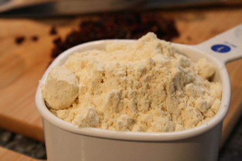 I chose this combination because the store employee says she uses BGFAP flour as a direct substitute for wheat flour, and she thought all her baked goods were fabulous. However, gluten-tolerant friends of hers tended to complain about a little bit of “beany” flavor in her goods. Based on Alexandra’s statement that coconut flour tends to be a bit sweet and/or “coconutty”, and the fact that the coconut flour package had an easy substitute if you wanted to add it to wheat-based baking (up to 20% for all-purpose flour), I decided that was the correct combination.