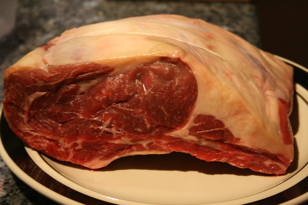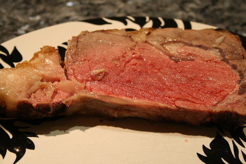 The raw meat. Tasty looking, but rather fatty looking. I wasn’t sure what, if anything, I should trim off. In the end, I decided to leave it well enough alone. I remembered prime rib from restaurants past having big amounts of fat on the ends.