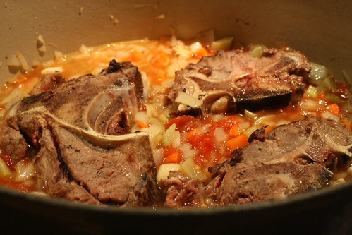 Well, I call it an experiment, but like the cautious cook I usually am, I took Marc Bittman’s recipe for “Braised Oxtail with Garlic and White Wine” and messed with it as I cooked. For one thing, I used beef neck instead of oxtail. It looks just as (if not more) tasty than the oxtails I’ve had, but was astoundingly cheaper. If this works out, I may never go back to oxtail.