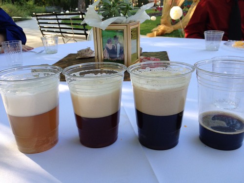 However, the best beer was at the wedding. I’m not just saying that because the groom, who is a good buddy of mine, brewed it all himself. There actually was a phenomenal red on tap. Solid hop characteristics, distinct hop aroma, not at all bitter or overly aggressive. Gorgeous color. Truly wonderful. It’s the second from the left, if you’re curious.