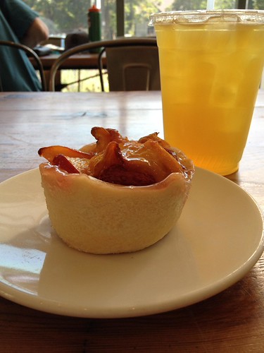 My first dessert was this peach and raspberry pie, along with this “citron” green tea. Very tasty, but I’d have liked a bit better crust. Darker, maybe. It was super flaky, though, and the peaches were amazing. Amazing enough to make up for the damn raspberries that were in there.