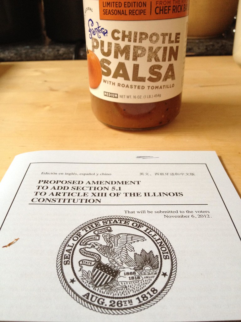 Interestingly, and unfortunately, I’ve not been hearing about Illinois’s ballot. No joke. I’ve heard/read/taken in exactly two comments about things I’m going to be voting on in less than a week. One was a friend’s FB comment on an amendment to the Illinois constitution and one was a friend’s tweet: