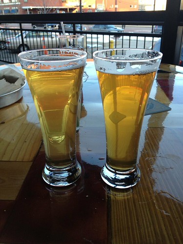 Founders was packed. We found ourselves incredibly glad we’d checked to make sure it wasn’t a release day before heading up there. We chose to sit outside under the heaters. There was a woman in a Pikachu cape she’d made herself behind us. I tried their “Spite” beer, which would have suited my morning’s mood, but I was in a much better mood. Also, it was really too spicy for me to have a full glass, as it’s brewed with two kinds of peppers, one being habeñero. I ended up with a glass of their lovely oatmeal stout on nitro. The bartender bought me that round for having spontaneously driven up from Chicago. Bill and I got some cheesy bread and we discussed life. Eventually, I grabbed a kölsch for me and a “Main Guy Mango” beer for him. We both found the mango beer shockingly sweet. We discussed life & my icy toes. He got me my camera bag, so I could take cool photos. We sat quietly and listened to the jazz band off and on. We threw $5 into the tip jar they came out and passed.