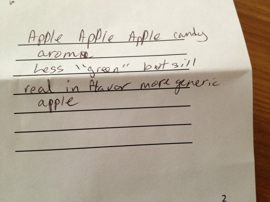 The course is six basic problem flavors, and because it’s geared toward those studying for Cicerone certification[1], there’s a goodly amount of discussion about how each problem occurs and if it’s something that can be fixed or prevented by the server or bar (for example, dirty draft lines can cause several of these flavors). I found this information fascinating, but was mostly focused on the stuff a homebrewer might care about. One example is Acetaldehyde, which was an incredibly “green apple candy” aroma to me, and is apparently typically (exclusively? I’m not sure.) caused by removing the yeast from the beer too soon.