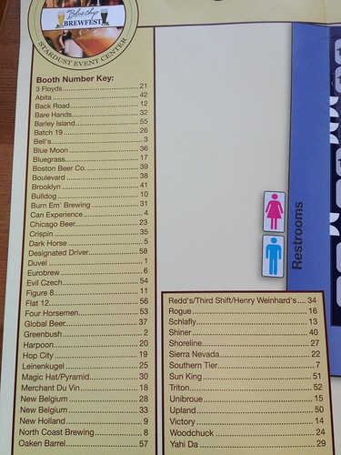 The general admission area was, as brewfests so often are, mostly a large room filled to the gills with brewery representatives and people trying the beers. There were about 50 breweries scheduled to attend (list in the photo below), and I think most made it. I didn’t see 3 Floyds there, but I may have missed them as I tend to try places I’ve never heard of at brewfests.