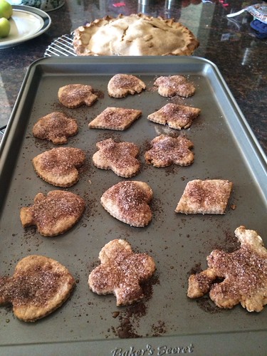 My mom makes these, and has ever since she was a teenager, talk about blast from (my) past, seeing them on your blog. Except she never cuts them into cute little shapes. She just takes the leftover pie crust after cutting out the pie crust itself, and plops them into an aluminum pan, dusts them with cinnamon sugar, and then bakes them. I almost think they’re better than the pie itself, well, depending on the pie.