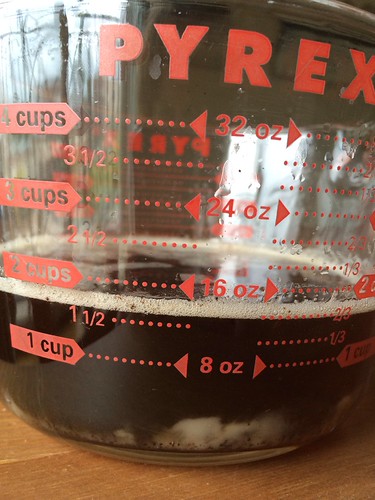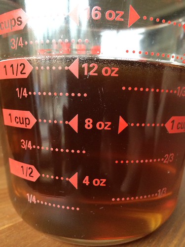 I got about a cup and a third of rendered (unstrained) fat from this pound of bacon. One cookbook I’ve checked out of the library says I’m supposed to get about a quarter cup from a pound…