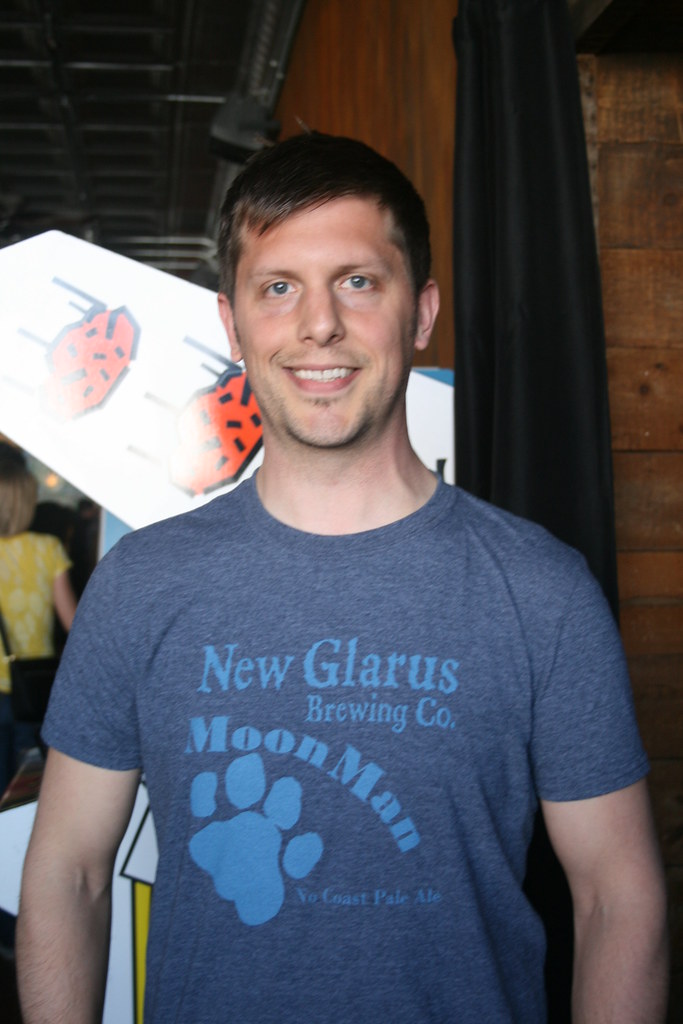 This year, we had many fewer beer shirts than last year. All the shirts were from breweries. That said, it was much easier to get opinions on the shirts than last year, and the clear winner was this nice guy, wearing a New Glarus Shirt.