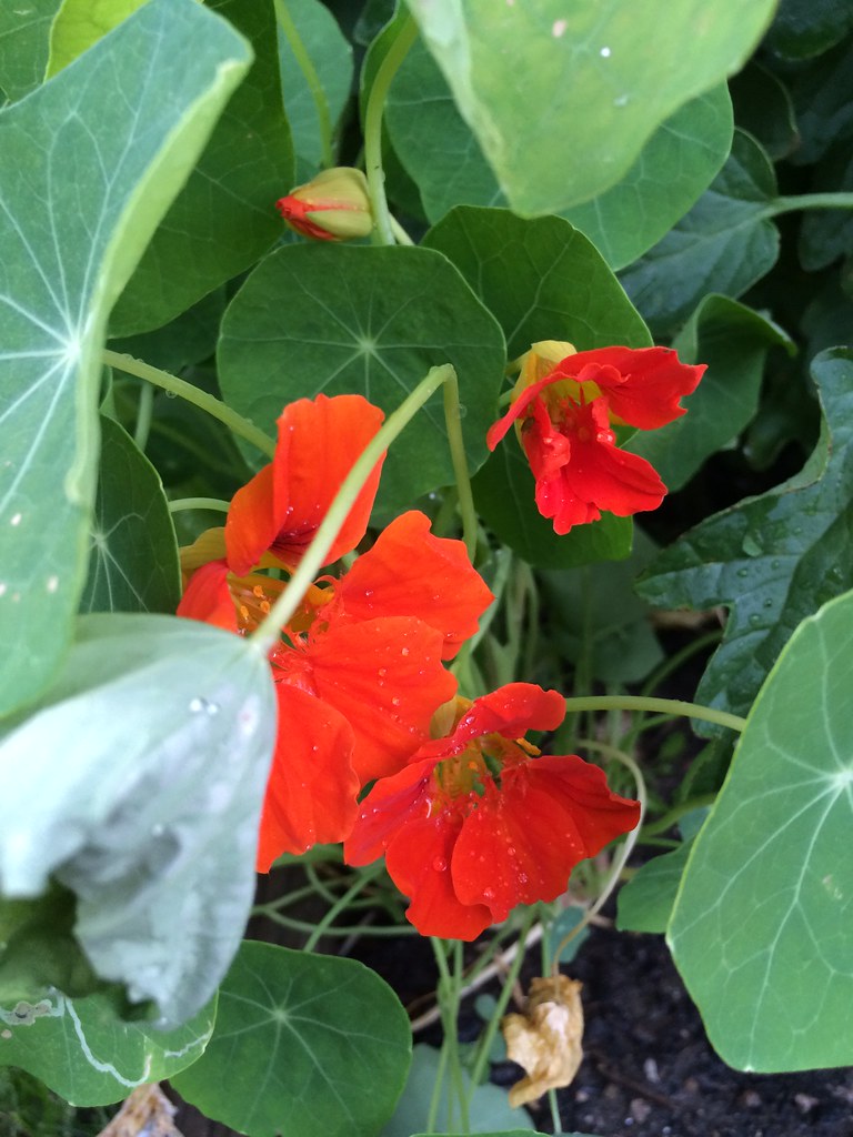 Flowers. Really, this was all a lead-in to flowers. Nasturtiums, which I only learned of last year, are VERY IN. I will definitely be planting more of them this year.
