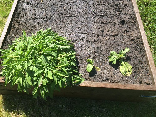 Bill and I left town for about two weeks. When we came back, our garden had gone kind of wild. Others were watering for us, and may have harvested a few things. I don’t know. I did, however, take a bunch of photos. There’s a sample below, including a tomato I’d like diagnosed, please! If you’d like to see more, just click through any photo to get to the image within the flickr set & poke around!