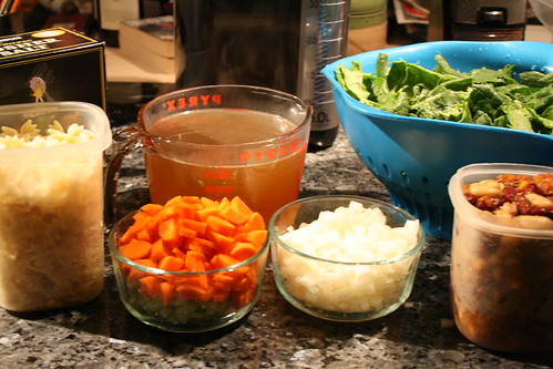 Basically, it doesn’t freeze well. Most of it does, but the greens do not. I’m not really sure why they don’t, since I expected it to freeze well. However, the freeze and reheat cycle leaves them disintegrating and not terribly palatable. I’m sure this isn’t a microwave issue, simply because reheating the following day is fine.
