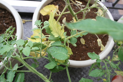 Bill and I left town for about two weeks. When we came back, our garden had gone kind of wild. Others were watering for us, and may have harvested a few things. I don’t know. I did, however, take a bunch of photos. There’s a sample below, including a tomato I’d like diagnosed, please! If you’d like to see more, just click through any photo to get to the image within the flickr set & poke around!